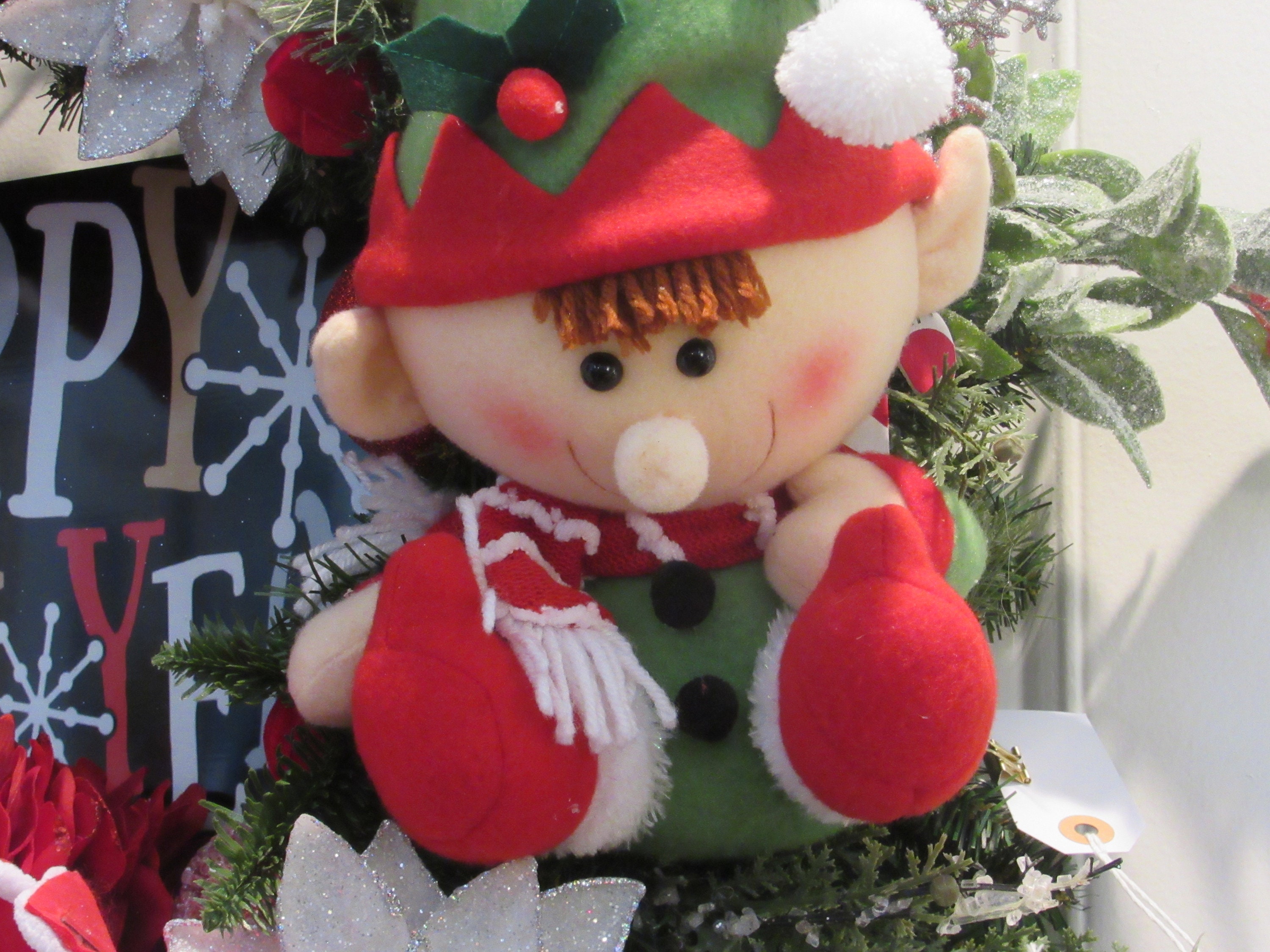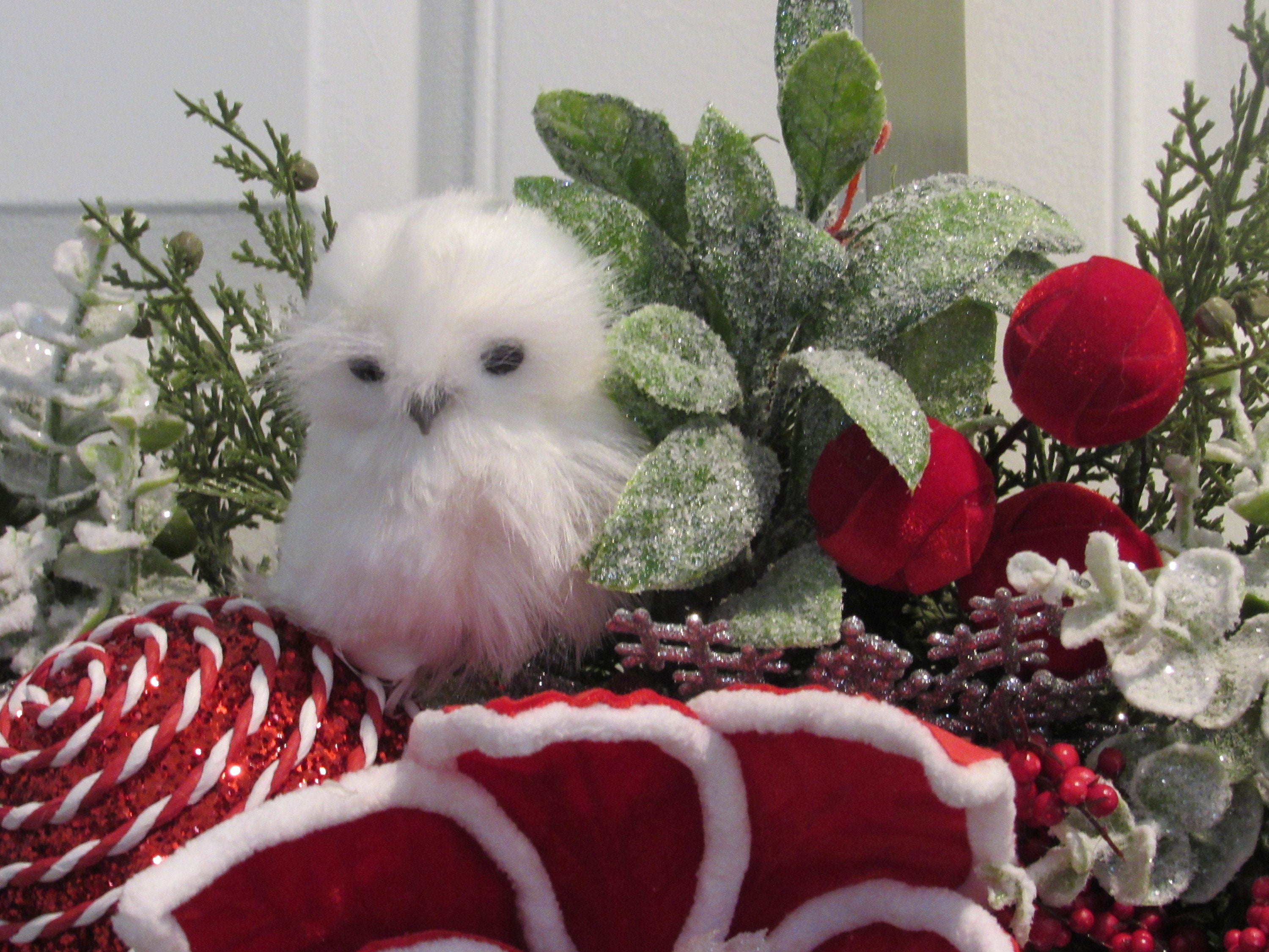 Designer "Elf and Owl's Happy New Year" Door Wreath, Fireplace Wreath with Hand Fashioned Bow. Christmas Wreath. Restaurant Decor' This festive wreath is sure to make you and other smile. The Happy Elf and the Snowy Owl add cuteness to the bright and happy beauty of this wreath. An excellent addition to home, business or restaurant.