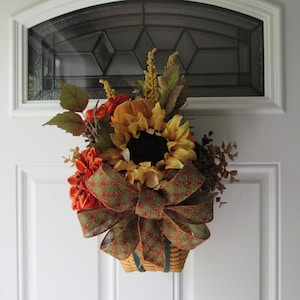 Harvest Time, Sunflower,Hydrangea, Wildflower Pumpkin Centerpiece with Hand Tied Bow
