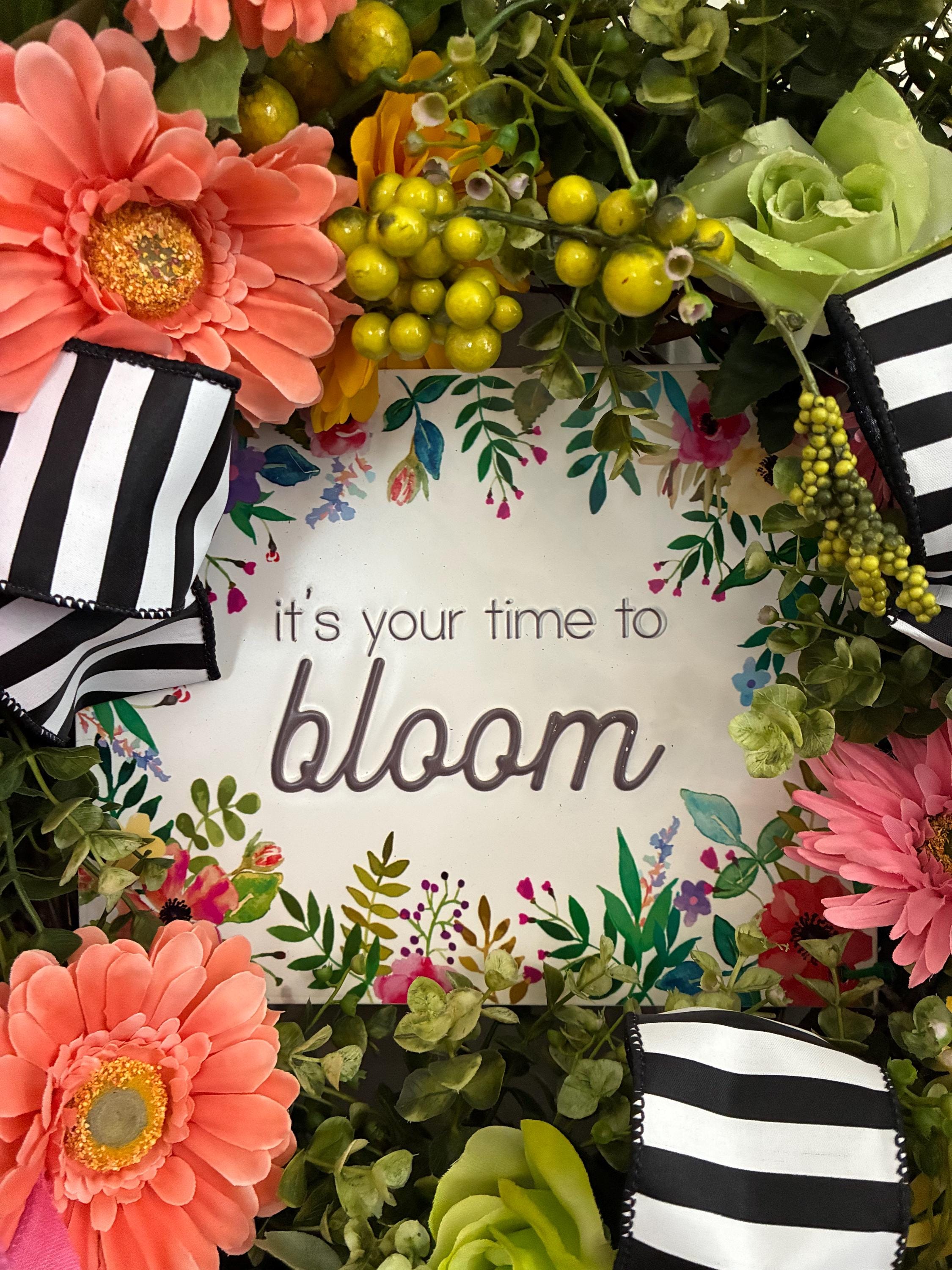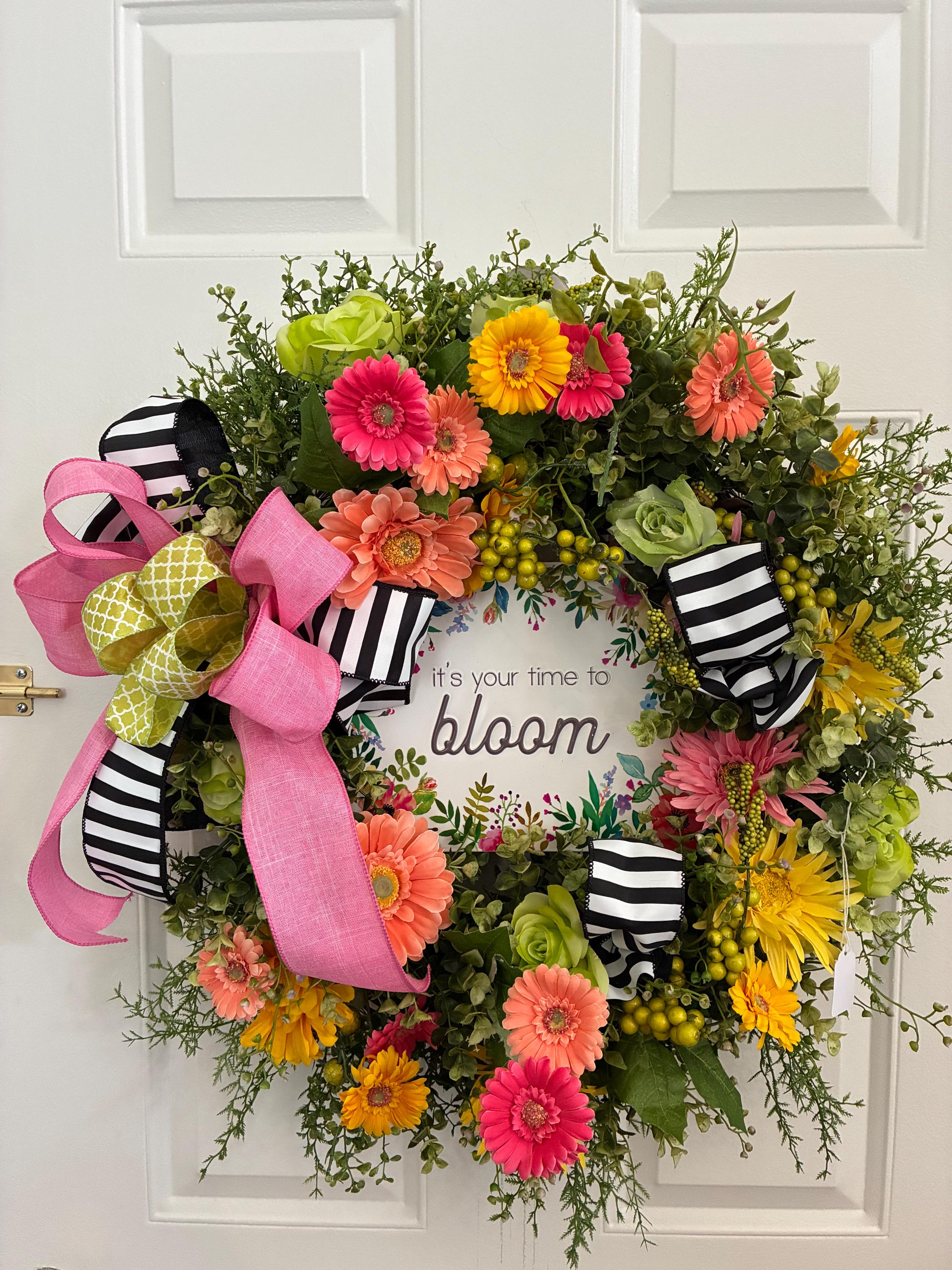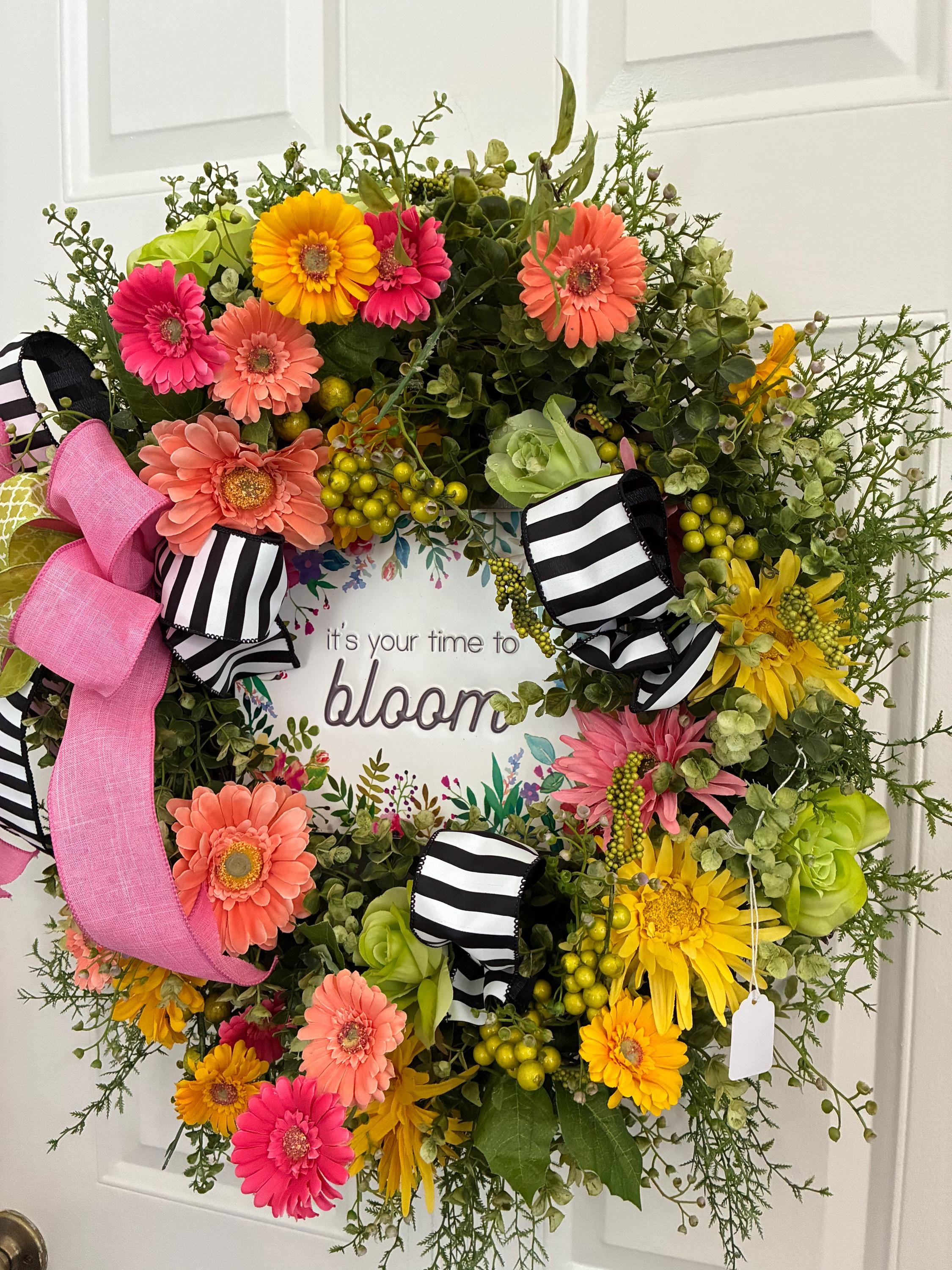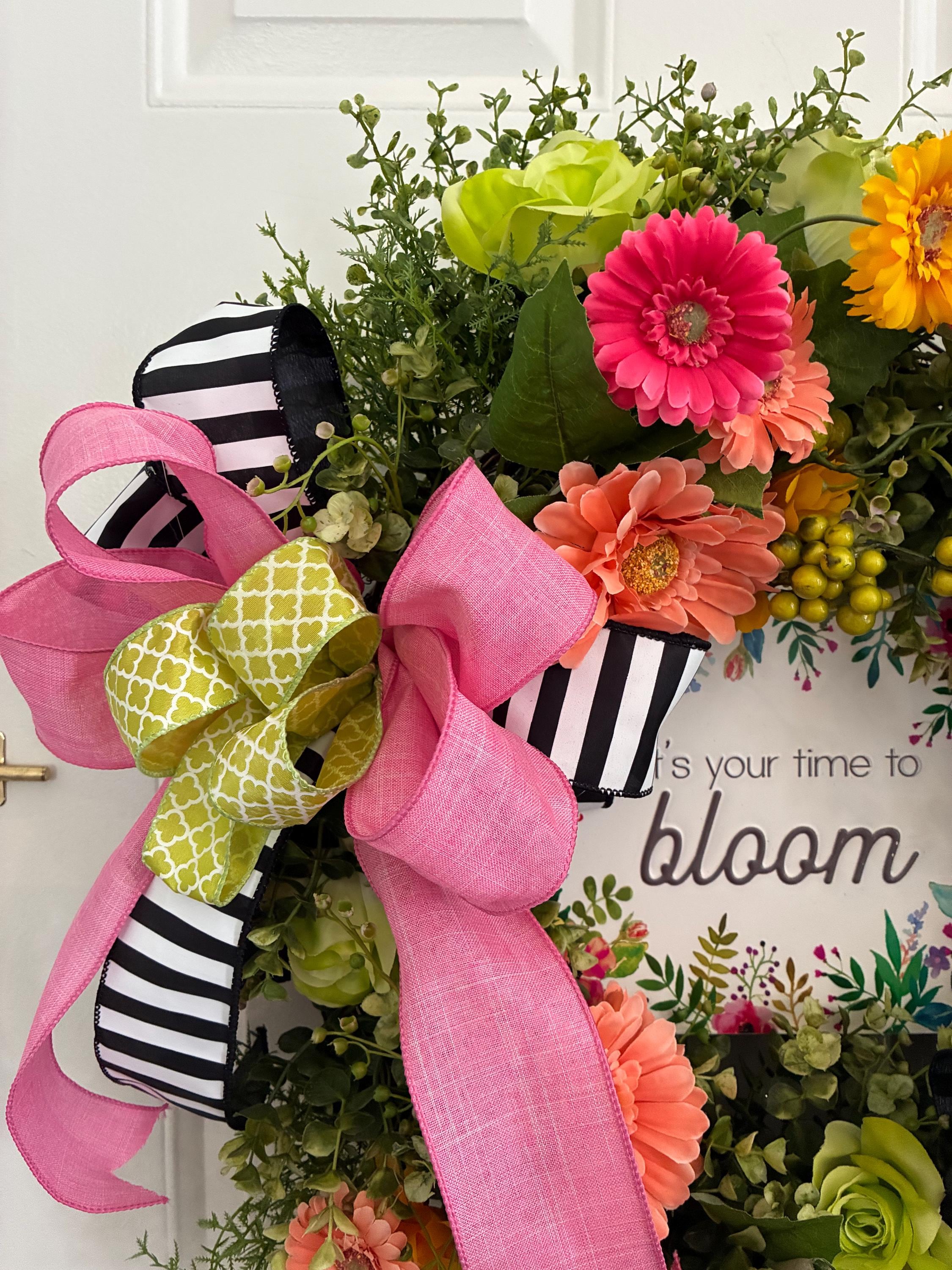 Time to Bloom Floral Door or Wall Wreath with Premium Hand Tied Bows For New Job, Graduation Commencement Gift