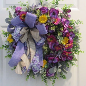 Welcome high quality designer year round door Wreath with Black and white hand tied harlequin ribbon,
